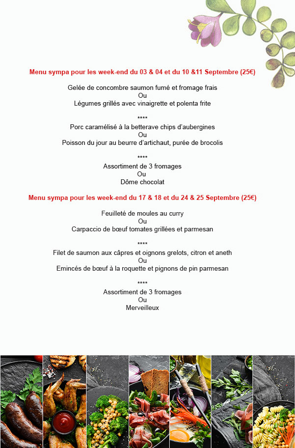 Laissez vous tenter par nos propositions pour les week-end du 03 & 04 et du 10 & 11 septembre et les week-end du 17 & 18 et du 24 & 25 septembre.