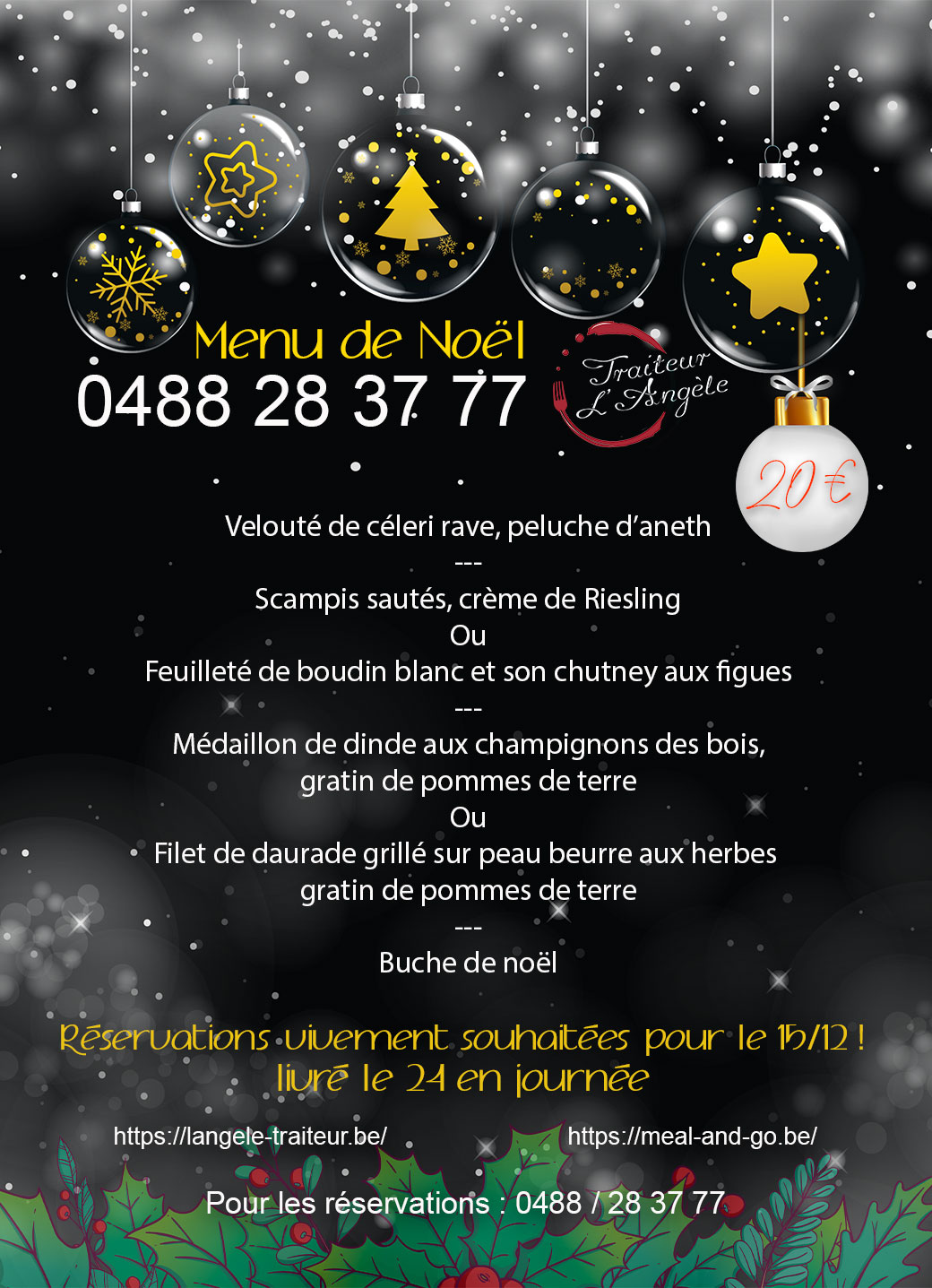 Voici nos menus pour les fêtes Meal and Go et traiteur l’Angèle à Florennes.